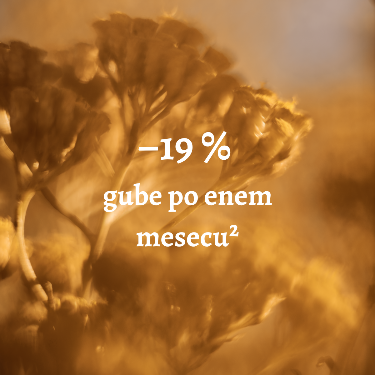 ² Fotografije 38 žensk, starih med 45 in 70 let, rezultati po 28 dneh. Povprečni rezultati pri obraznih gubah (s kliničnim ocenjevanjem) –