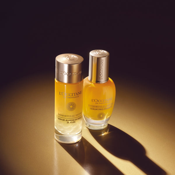 Ekipa L’Occitane je odkrila antioksidativno in pomlajevalno delovanje eteričnega olja immortelle, ki ga pridobivajo na Korziki. Pomaga izboljšati čvrstost kože in zmanjšati gube. -