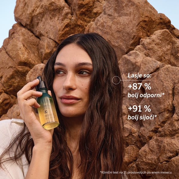 1Zdrav videz las in lasišča se ocenjuje z vizualnim ocenjevanjem mehkobe, odpornosti in sijaja las ter navlaženosti in prožnosti lasišča.
