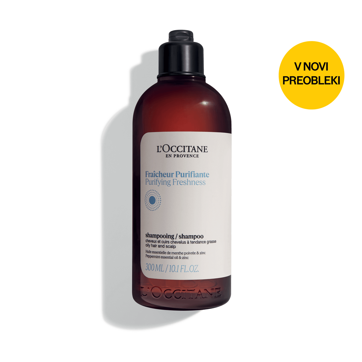 Nove rjave stekleničke spominjajo na L'Occitanovo prvo kolekcijo izdelkov za nego las, lansirano pred desetletji, hkrati pa utelešajo L'Occitanovo aromaterapevtsko dediščino in pričajo o njegovi zavezanosti ohranjanju narave. Šampon je na voljo v kar štirih različnih velikostih. Na voljo tudi v družinski velikosti 500 ml, potovalni 75 ml in v embalaži za eko ponovno polnjenje.