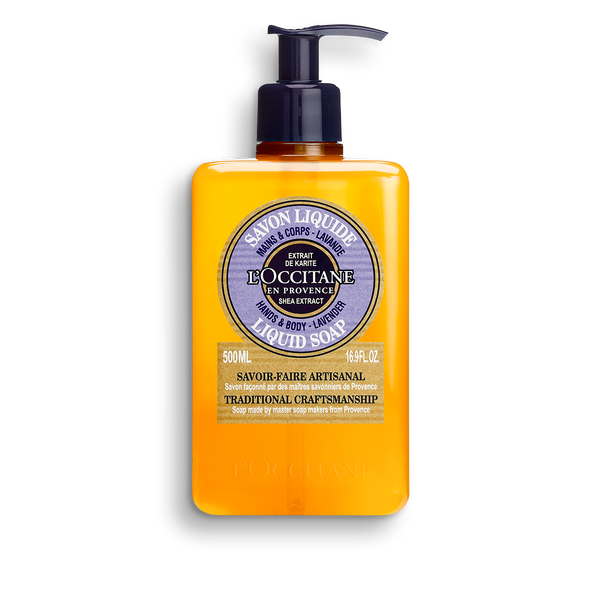 AQUA/WATER - HELIANTHUS ANNUUS (SUNFLOWER) SEED EXTRACT - COCONUT ACID - POTASSIUM HYDROXIDE - SODIUM CHLORIDE - PARFUM/FRAGRANCE - BUTYROSPERMUM PARKII (SHEA) BUTTER EXTRACT - LAVANDULA ANGUSTIFOLIA (LAVENDER) OIL - GLYCERIN - CAPRYLYL GLYCOL - TETRASODIUM GLUTAMATE DIACETATE - UNDECYLENIC ACID - CITRIC ACID - CARAMEL - LINALOOL - LIMONENE